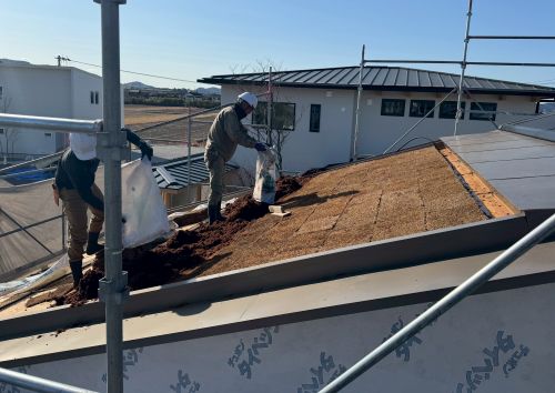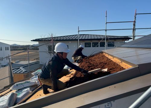 「Green Solar House」では、草屋根の施工が進んでいます。