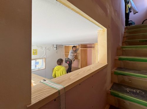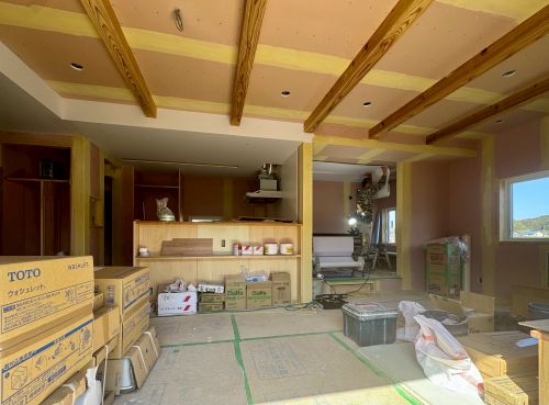 このあと建具の吊り込みを行って設備器具や照明器具の取り付けに