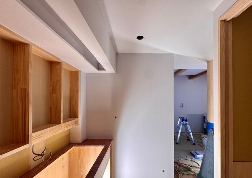 まさに職人さん泣かせの素材ですが、矢野工務店のクロス職人が丁寧に仕上げてくれており、