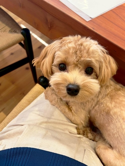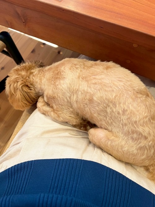 膝の上でリラックスモードのムクちゃん🐶