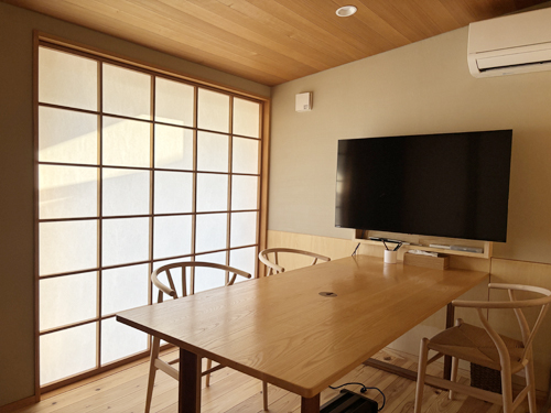 お客様と顔を合わす「打合せスペース」には大型テレビを設置しました。