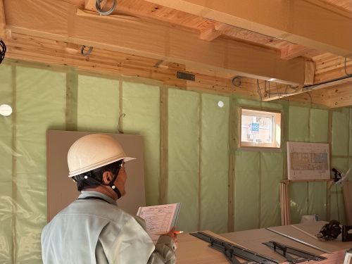 耐力壁や耐震金物の設置状況、断熱材の施工状況など、細部までしっかりと確認していただきました。