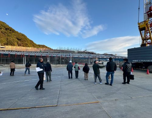 現場では鉄骨建方も7割ほど完了しており、建物のスケール感や迫力に、参加された皆さんも圧倒されていました。