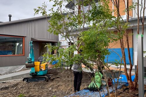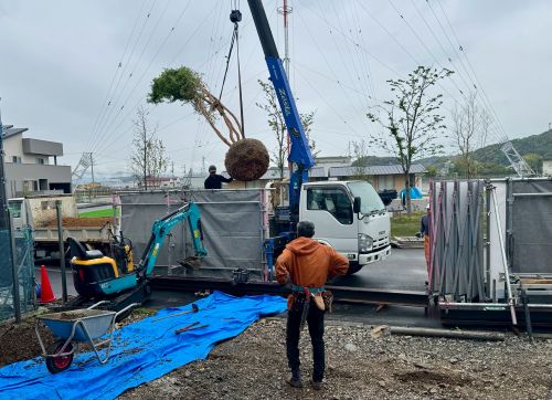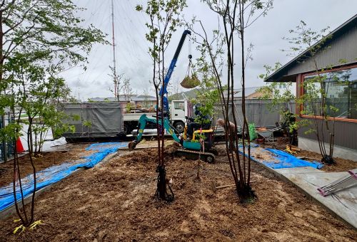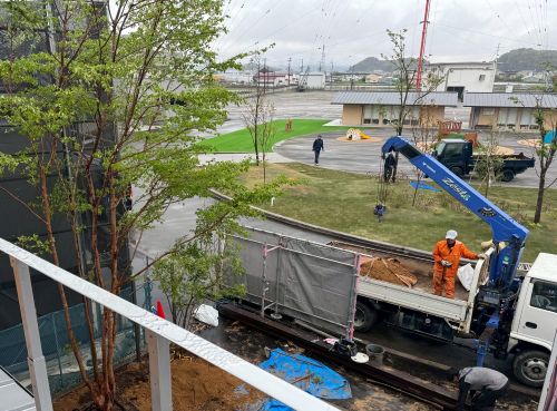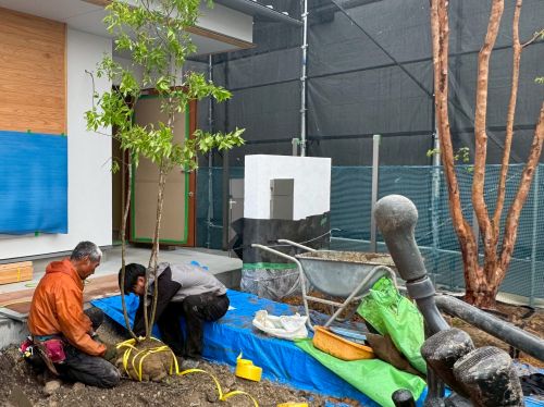 住まいるパークでは、雨の日でも植栽工事が着々と進んでいます。