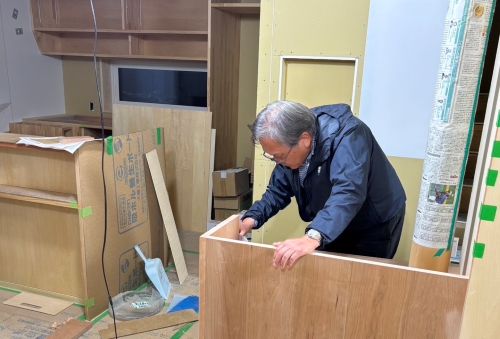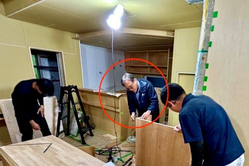 この日は翌日にクロス工事が入るため、どうしても造作家具を仕上げなければならない状況でした。