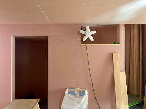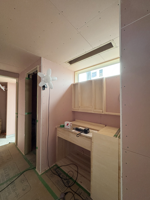 これからの仕上げ工事で空間の表情が大きく変わっていく、